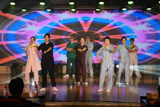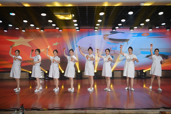 表彰结束后,下半场的文艺汇演在舞蹈《把未来点亮》的绚烂而美好中拉开帷幕,文艺汇演节目内容形式多样,有舞蹈、走秀、快板、健康脱口秀、合唱等。男护团队参与的走秀《护士风采》逗得大家开怀大笑;快板《听我说》让护士通过轻松幽默、欢快风趣的节奏,来展示护士们坚守岗位、辛勤工作的精神风貌;护士是天使的化身,是健康生命的守护者,他们用心血和汗水凝聚着每一份爱,在平凡的日子里,谱写了一曲又一曲的精彩赞歌,合唱《爱有力量》让我们共同感受到一场充满爱与力量的音乐盛宴;最后,一支舞蹈《援护,守护》表达了一个护士成长的经历,向辛勤守护在一线的同仁们表示了最崇高的敬意和继续守护人民健康的决心。