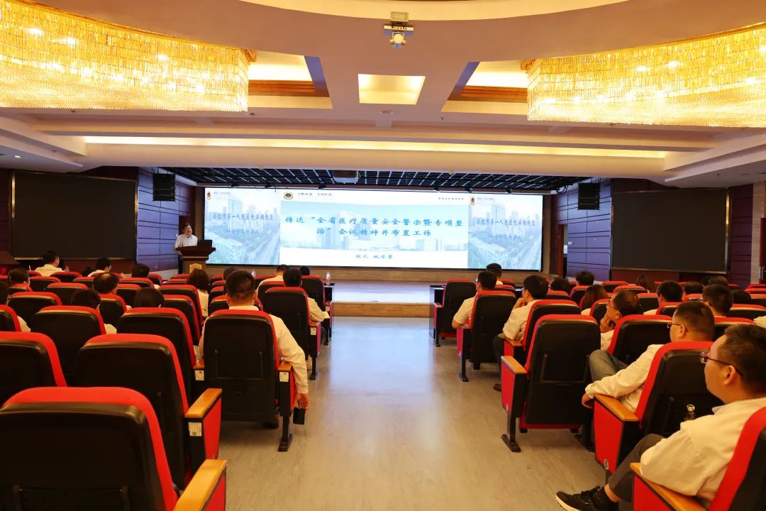 院长姚登攀传达了全省医疗质量安全警示暨专项整治部署会会议精神,要求全院认真学习,进一步提高认识、查摆问题、严明规矩、全面提升,守牢医疗质量安全底线,改善全过程就医感受,切实解决人民群众看病就医急难愁盼问题,保障人民群众更好享有卫生健康事业高质量发展成果。