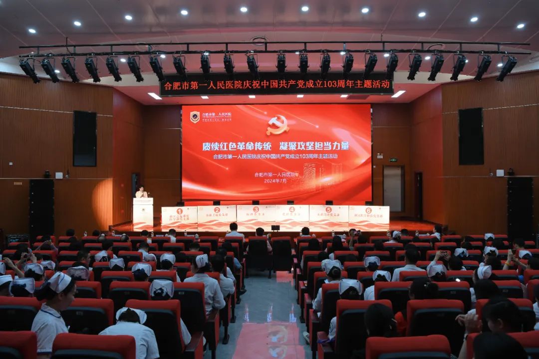 7月1日上午,合肥市第一人民医院在本部院区举办庆祝中国共产党成立103周年主题活动,颁发“光荣在党50年”纪念章,表彰“两优一先”,同时开展党建知识竞赛决赛。市卫健委党委书记、主任张晓峰,市卫健委办公室主任吴立光,市一院领导班子全体成员,50年党龄老党员出席活动。各党总支、党支部书记,职能部门负责人,科主任和护士长代表,民主党派代表等参加活动。 大会第一项是“光荣在党50年”纪念章颁发仪式,苏家庆、梅宝珊...