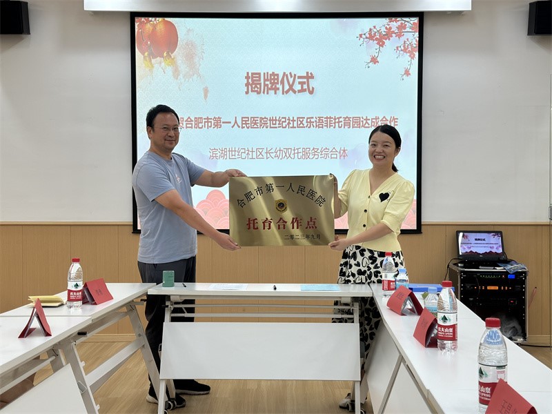 为响应安徽省“10项暖民心行动”,积极推进“安心托幼”工作,9月4日,合肥市第一人民医院与滨湖世纪社区乐语菲托育园成功签订“安心托幼”合作协议并进行“托育合作点”授牌。包河区卫健委人口家庭科科长胡海鹏、滨湖世纪社区涂丰莲、市第一人民医院工会副主席王昌义、事业发展处副处长丁海波,滨湖世纪社区乐语菲托育园负责人孟凡若女士参加协议签订和授牌仪式。 孟凡若女士向大家介绍了乐语菲托育园的建设和目前服务情况,...