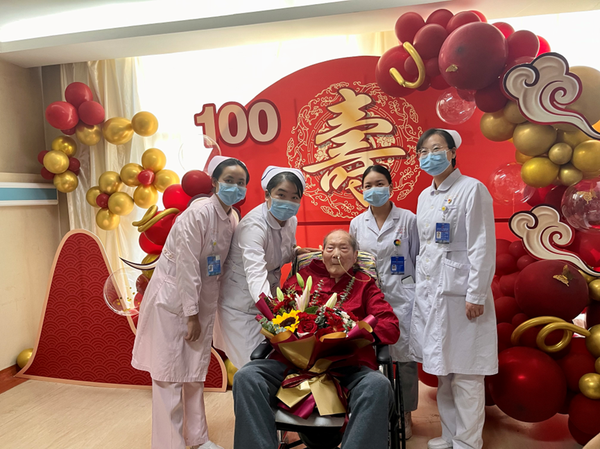 一束鲜花,一个寿桃蛋糕,一碗热气腾腾的长寿面……5月20日下午,合肥市第一人民医院南区干部保健科43床的病房里热闹非凡,医护人员和患者家属正在为离休干部潘丹中老人举行一场别开生面的百岁老人生日庆祝活动。为了让老人过一个特殊的生日,潘老的子女们提前几天就和医护人员共同商议老人生日当天的场地布置、活动流程等。5月20日下午,伴随着祝福的欢声笑语,干部保健科医护人员为潘老送上美丽的鲜花,并端上一碗长寿面,送上全...