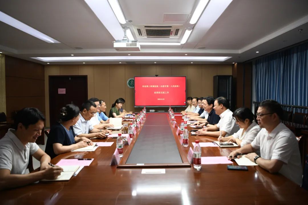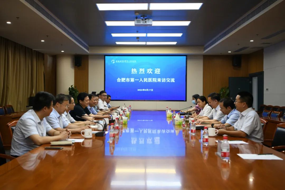 8月17日下午,合肥市第一人民医院党委书记吴冬雷,党委副书记、院长唐智国带队赴安徽医科大学第二附属医院学习交流。安医大二附院党委书记周典,党委副书记、执行院长田仰华、副院长王文艳接待来访。 周典书记在座谈中指出,市一院作为一所历史悠久的公立医院,有着深厚的文化积淀,积累了丰富办院经验,希望两院友好协作,共同发展,进一步推动公立医院高质量发展和我省医疗水平持续提升。 田仰华院长从人才战略、学科建...