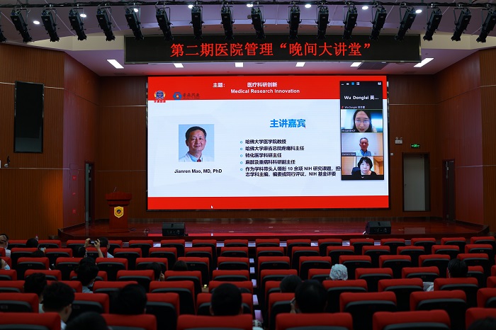 7月14日晚上,合肥市第一人民医院第二期“晚间大讲堂”如期开讲,来自临床一线和管理岗位的百余名职工齐聚大礼堂,聆听美国哈佛医学院管理线上培训。培训由哈佛大学医学院教授、哈佛大学麻省总院疼痛科主任及转化医学科研主任、麻醉及重病科科研副主任Dr.Jianren Mao在主播端授课,通过现场直播方式进行。Dr.Jianren Mao分享了自己的科研经验和技巧,用丰富的专业知识与经验阐述了科研课题的设计方案、研究目标及实施路线图和预期的...