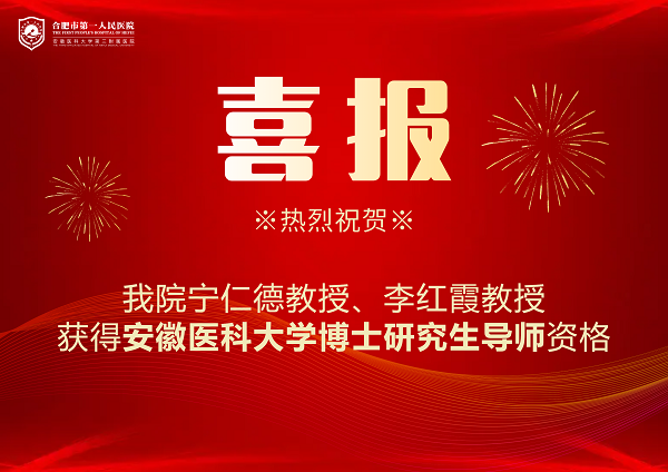 近日,安徽医科大学发布《关于公布新增2023年度研究生导师资格人员名单的通知》,合肥市第一人民医院骨科学宁仁德教授、肿瘤学李红霞教授获该校临床医学专业学位博士研究生导师资格,这将推动医院学科建设、人才培养、科学研究、教育教学等方面工作再上新台阶。宁仁德,医学博士,主任医师,教授,博士生导师,合肥市第一人民医院副院长,合肥市骨关节疾病临床研究中心主任,安徽省第四届江淮名医,合肥市关节与创伤首届名医工作室...