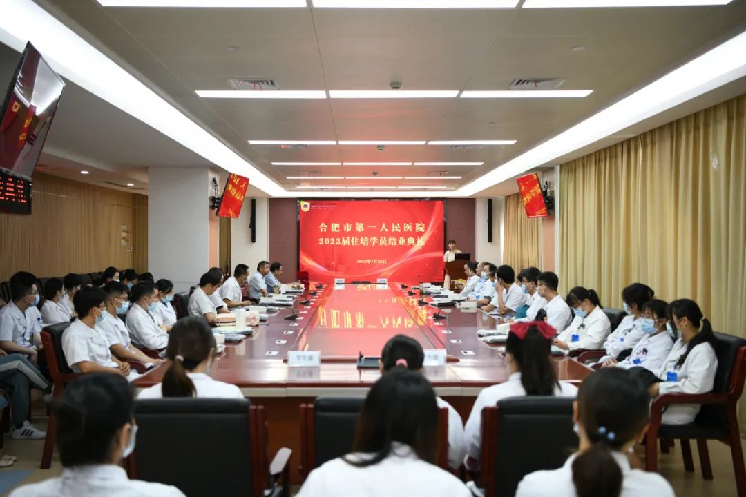 7月26日下午,合肥市第一人民医院2022届住院医师规范化培训学员结业典礼在医院新综合体大楼二号会议室隆重举行。院领导、专业基地主任、教学秘书、全体住培医师参加典礼,结业典礼由科教处副处长倪琴主持。 首先,2019级内科专业住培学员赵锐发言,他代表2022届结业学员对医院、科室和带教老师们3年来的悉心培养致以诚挚的感谢,并表示他们将时刻铭记这段宝贵的经历,谨记教诲,不忘初心,努力成为一名优秀的医生,为祖国医学...
