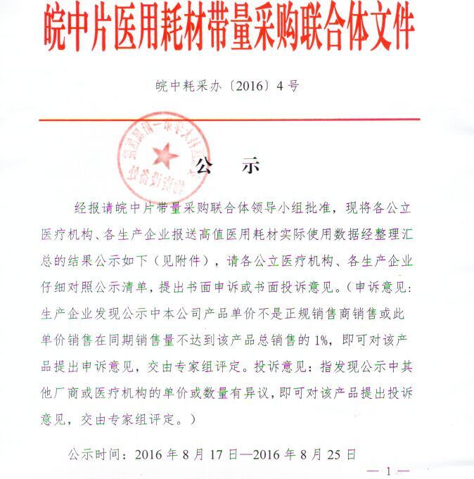 皖中片医用耗材带量采购联合体文件