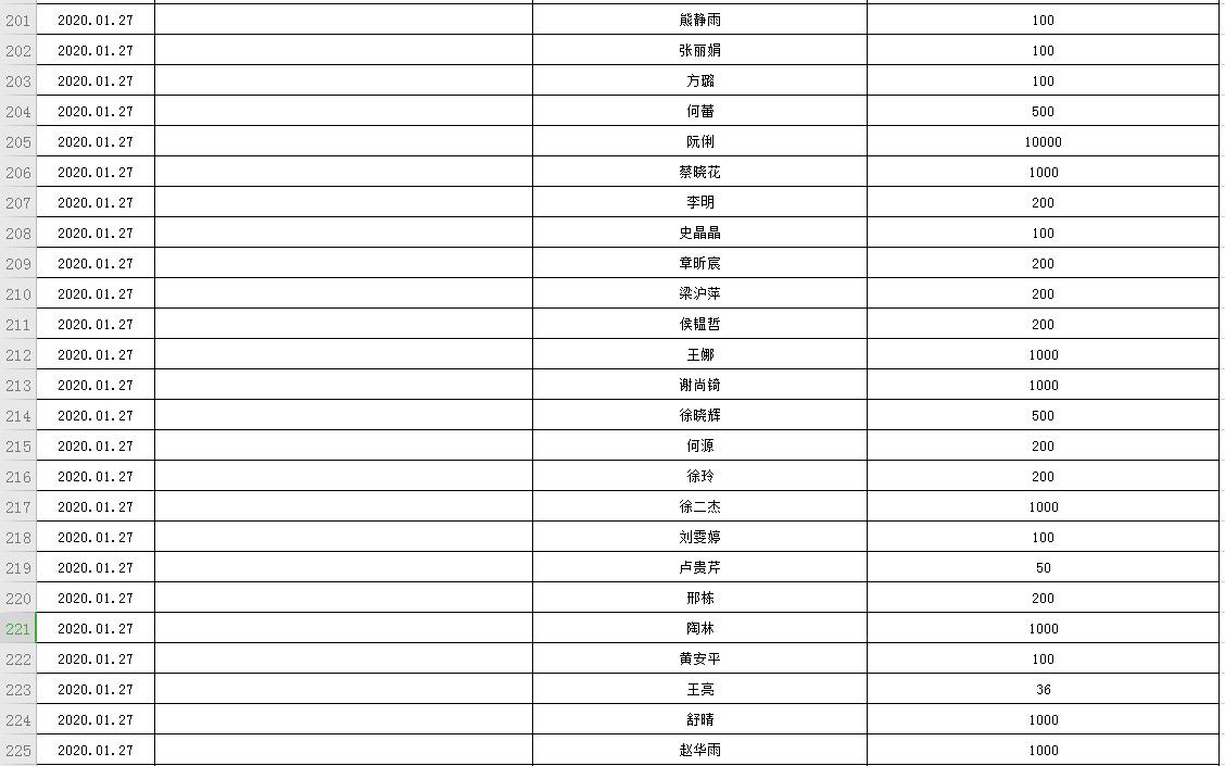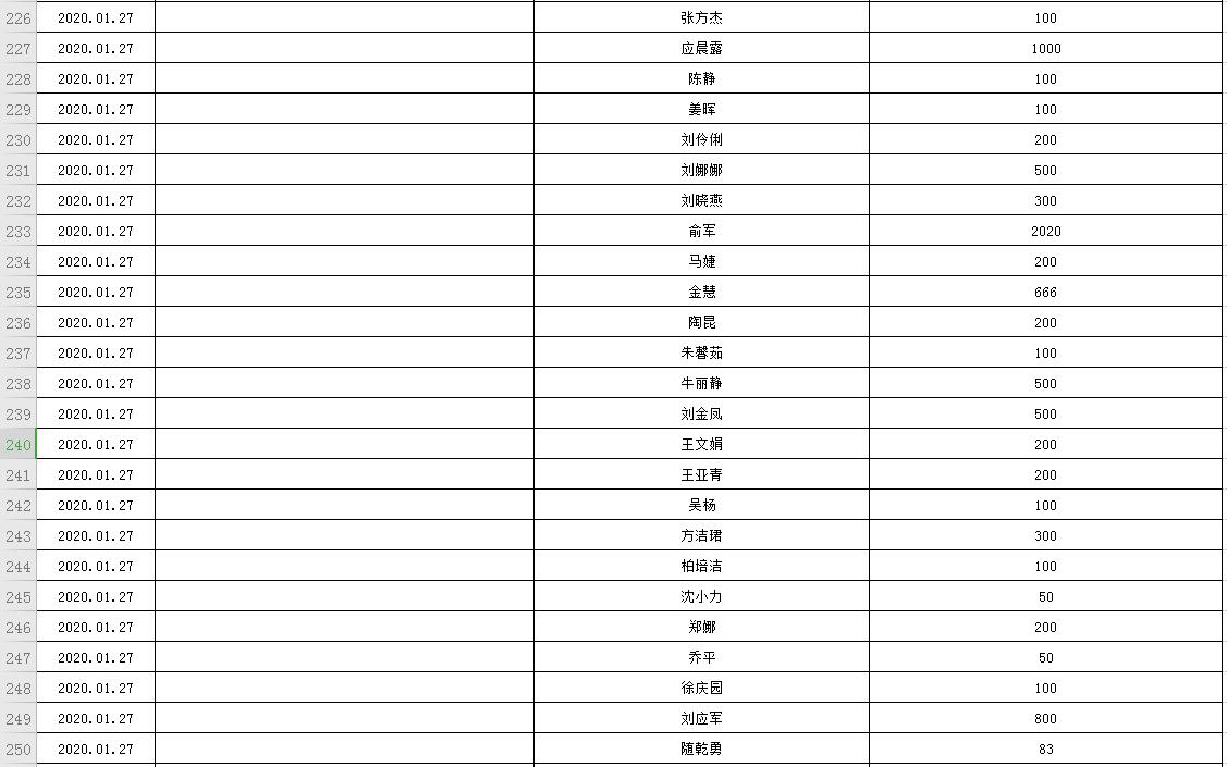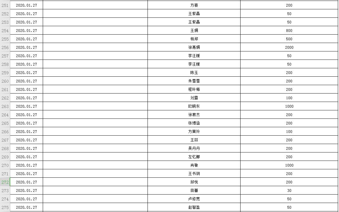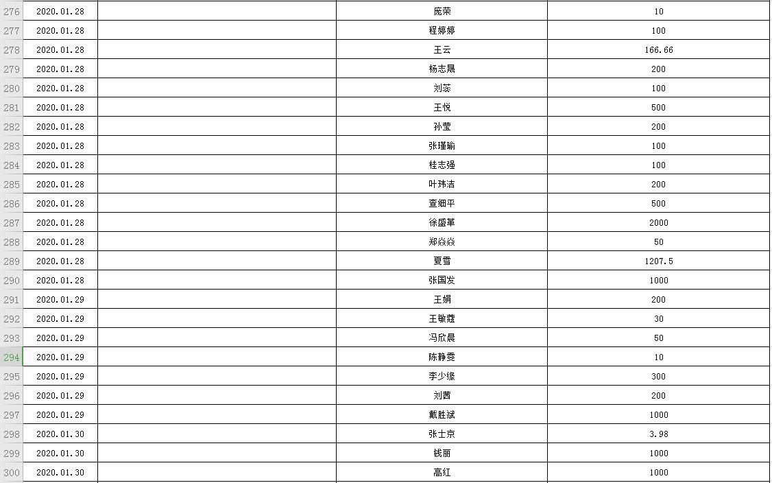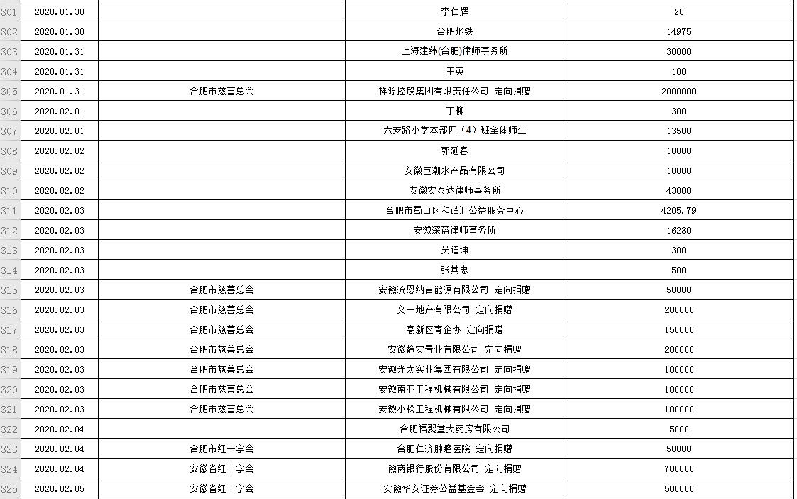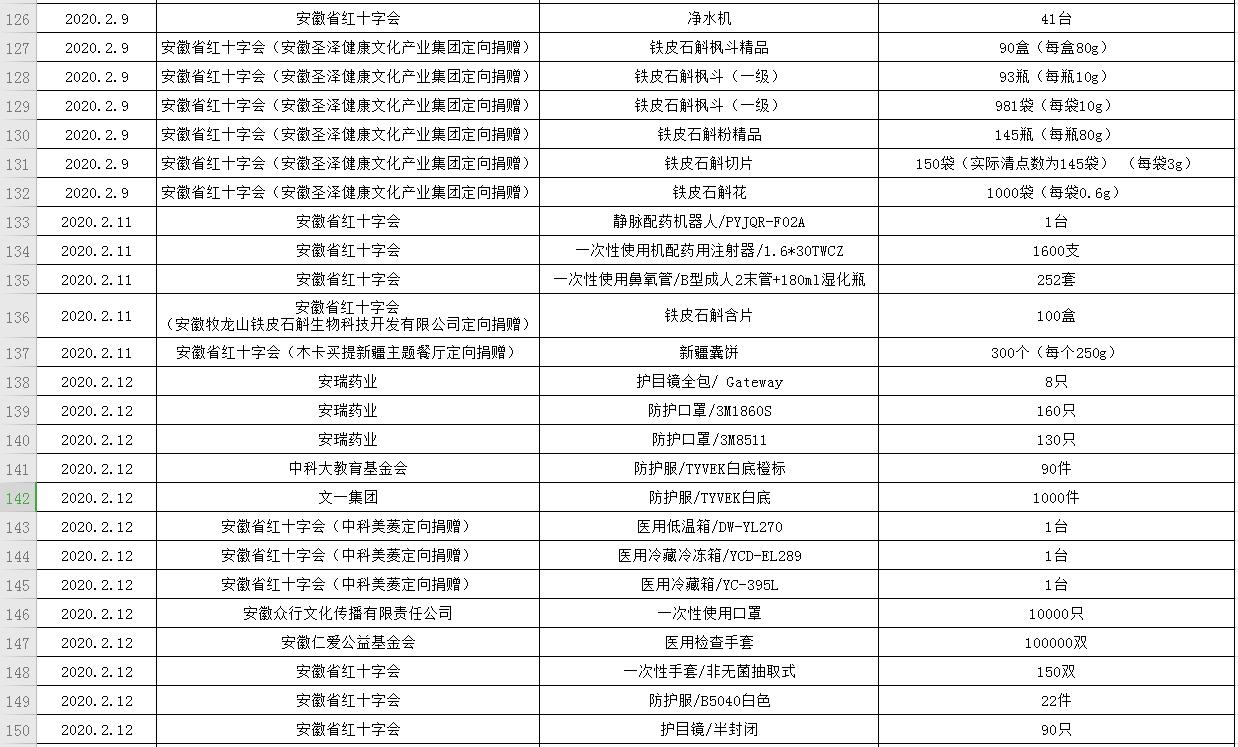 滨湖医院受赠物资公示表(2020.01.24--2020.02.20)