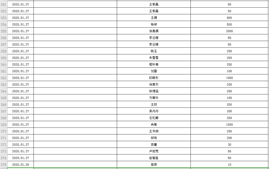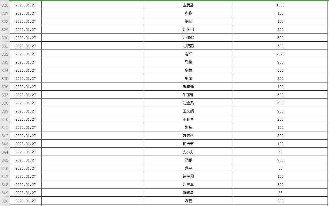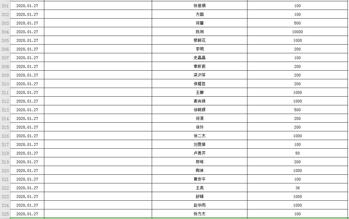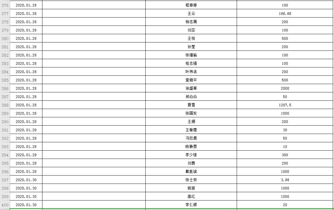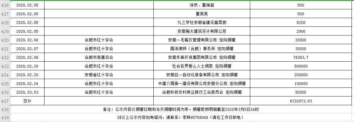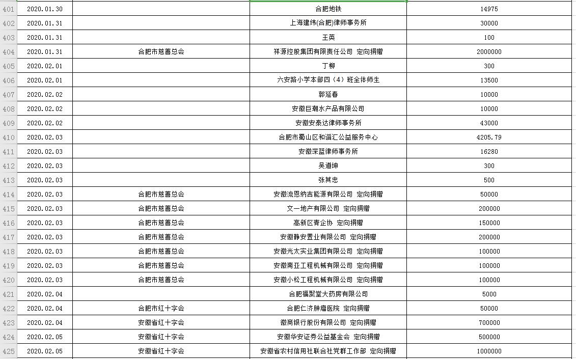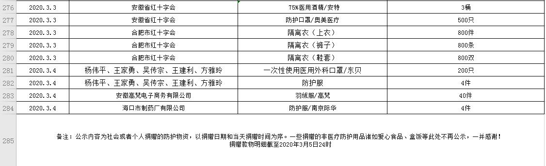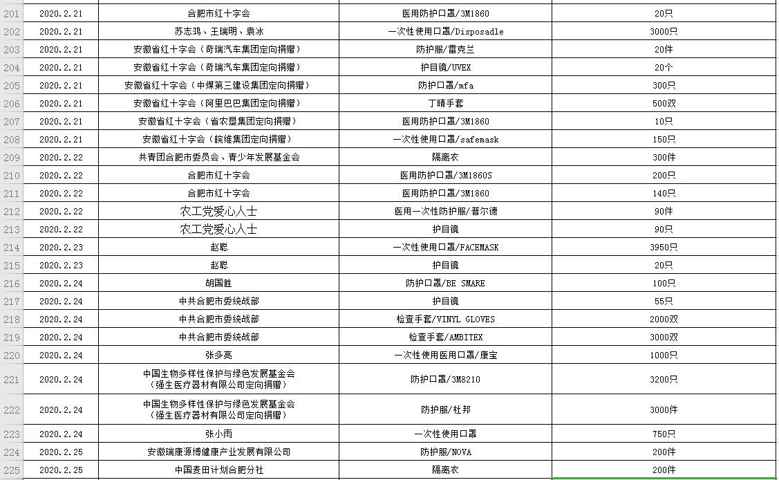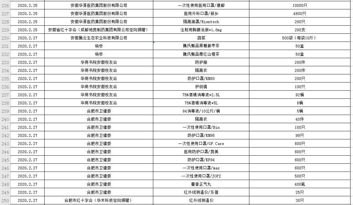 滨湖医院受赠物资公示表(2020.01.24--2020.03.05)