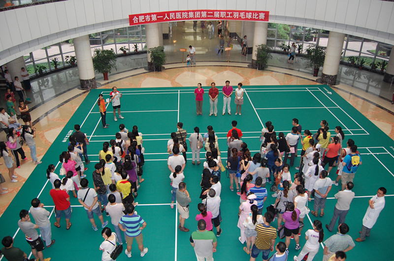 运动地板,参赛的八支运动团队近两百名运动员参加了开幕式,院团委书记周婕首先介绍了出席开幕式的院领导,院羽毛球协会会长张以锦宣布了比赛规则,裁判员代表郝峰和运动员代表林正明主任分别代表宣誓,最后,院党委副书记蔡晓明作了简短动员并宣布比赛开始。