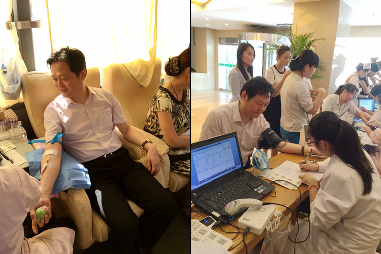 三天时间里,合肥市第一人民集团医院各个院区的职工积极配合着工作人员完成填写表格、测量血压和验血等献血前准备工作。很多科室主任、护士长纷纷带头献出自己的一份热血,献血队伍中有身先士卒的副院长;有刚下门诊匆匆赶到的科主任;有刚下夜班还没来得及休息的医护人员;有结伴而行的献血夫妻档;有多次献血的老职工;也有初次献血的年轻医护人员。市一院副院长吴冬雷亲自带头参加献血,他说:“作为医务工作者,我们更加明白血液在临床的重要性,积极献血、奉献爱心,我们医护人员应当作为表率。”市一院本部献血当天适逢七夕节,不少医护人员都说:“今年的七夕过的特别有意义