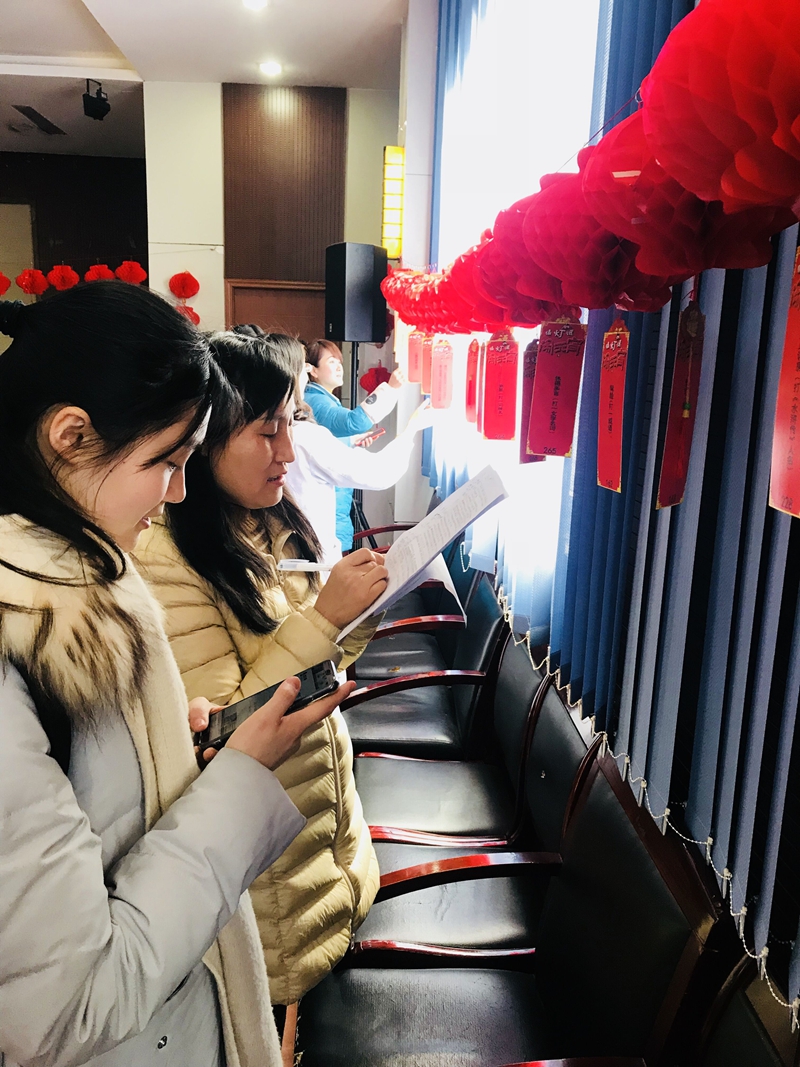 为了增加新春节日气氛,丰富广大职工的业余文化生活,展现医务工作者风采,增强医院职工的凝聚力。元宵节来临之际,院工会组织职工在2月18日、19日分别在滨湖医院阳光大厅和本部八楼会议室开展迎元宵猜灯谜活动。