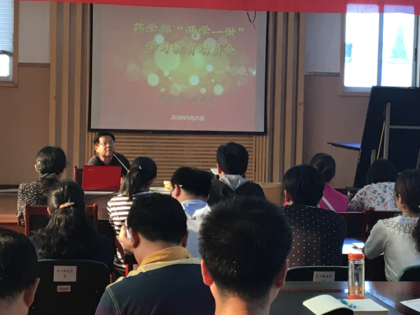 5月25日下午,药学部党小组组织的“两学一做”学习教育动员会在医学美容中心六楼临床药学培训教室召开。药学部全体党员以及除了值班人员的非党员同志参加了此次学习,会议还邀请了医技党支部林正明书记参会。
