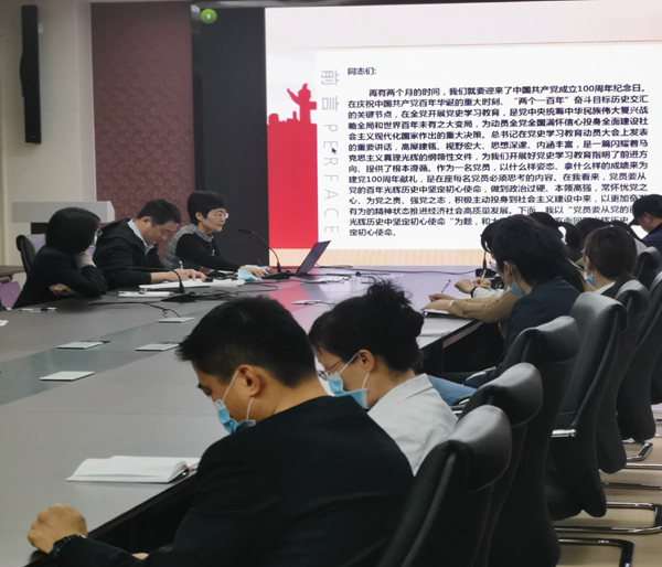 本部行政支部书记陈明同志从重温党的百年光辉历程和践行初心使命两个方面,带领全体党员再次回顾了近百年来党团结带领人民筚路蓝缕,历经千难万险,付出巨大牺牲,实现了三次伟大飞跃的艰苦卓绝的光辉历程。陈明同志说,在即将迎来中国共产党百年华诞的重大时刻、“两个一百年”奋斗目标历史交汇的关键节点,在全党开展党史学习教育,是党中央统筹中华民族伟大复兴战略全局和世界百年未有之大变局,为动员全党全国满怀信心投身全面建设社会主义现地化国家作出的重大决策,全体党员干部要从重温我党百年光辉奋斗历程中,再次坚定理想信念,再次坚定初心使命,力求做到学史明理、学史增信、学史崇德、学史力行,始终做到对党忠诚,尽职尽责,大是大非面前旗帜鲜明,大风大浪面前立场坚定,以更加昂扬的姿态投身到百年复兴之路中来。