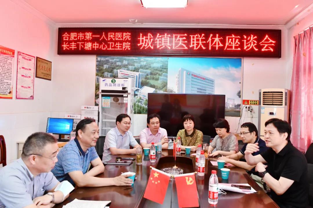 9月10日上午,合肥市第一人民医院党委书记吴冬雷带队赴长丰县下塘镇中心卫生院,就双方创新建设紧密型城镇医联体工作进行座谈。长丰县卫健委党委书记、主任黄克安,下塘镇中心卫生院院长孔宇,市一院副院长宁仁德,医务部副部长胡景春,合肥名医工作室领衔人童钟、张晓红、杨静、贺克武、席春华及相关人员参加座谈。