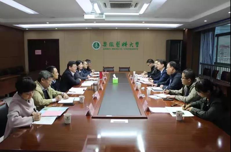 11月18日下午,合肥市第一人民医院党委书记吴冬雷,院长唐智国,副院长宁仁德,办公室、科教处负责同志一行6人到安徽医科大学访问交流。安医大校党委书记顾家山,校长曹云霞,党委常委、组织部部长李阳新,党政办主任赵智,医院管理处处长范自法,研究生学院院长孙业桓,教务处副处长卜娟娟接待来访并座谈交流。