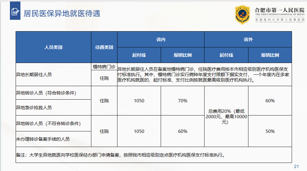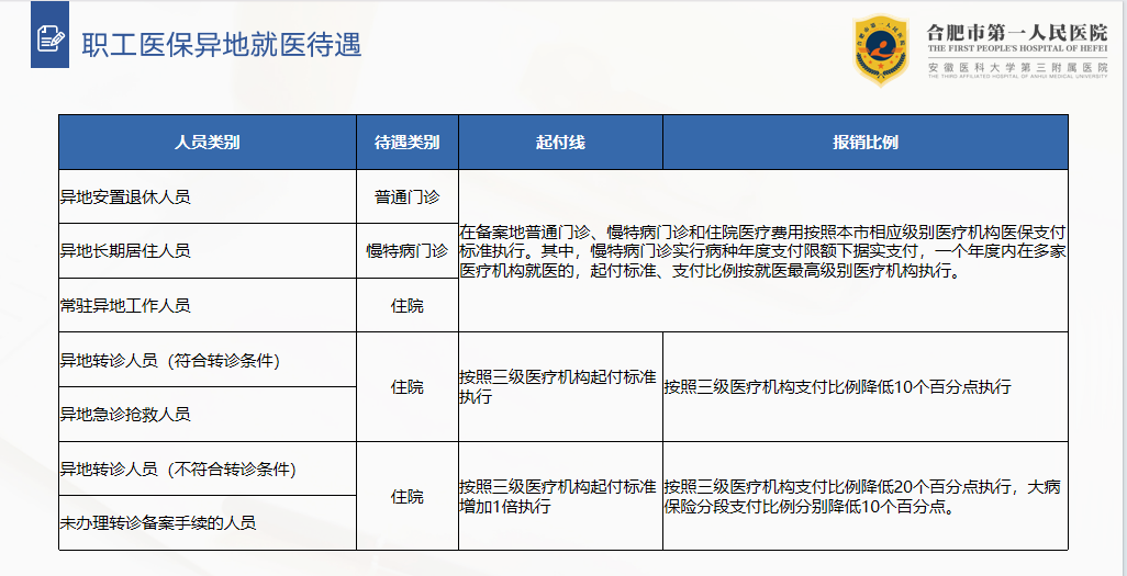 合肥市城乡居民异地就医报销待遇