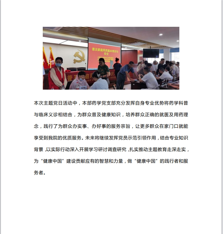 4、住院健康教育主要是针对各类不同病人的健康问题进行宣教。医护人员在承担诊治责任的同时,要承担有计划、有系统地进行宣教的义务,可采用口头教育、发放健康教育处方和卫生报刊、几种讲座等形式,也可采用查房、给病人治疗、护理或病情有变化时,进行非正式的健康教育。使住院病人相关卫生知识知晓率达80%以上。重视普及慢性非传染性疾病的防治知识和保健知识。