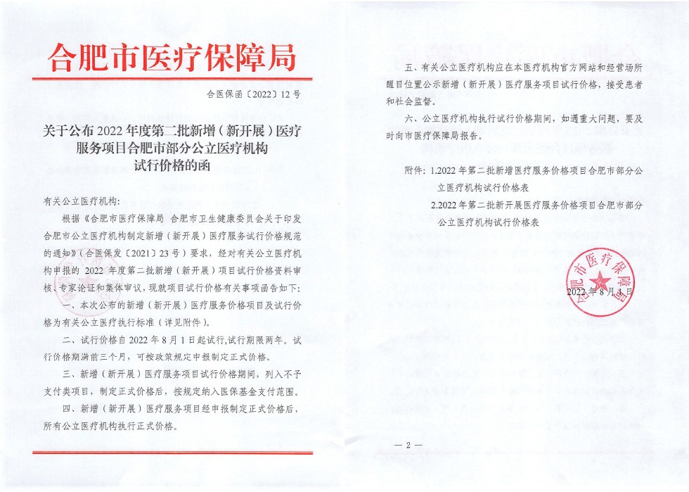 新增价格 ▏2022年度第二批批复新增(新开展)医疗服务项目价格