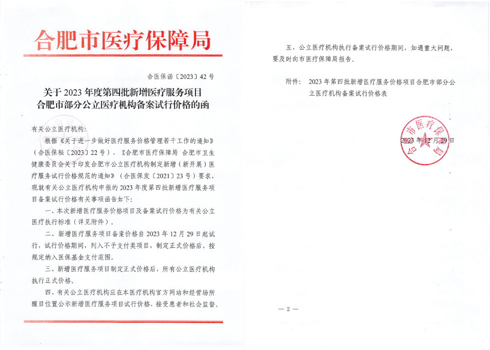 新增价格 ▏2023年度第四批批复新增医疗服务项目价格