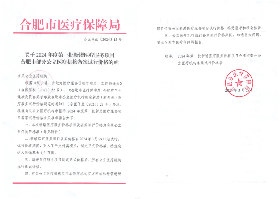 新增价格 ▏2024年度第一批批复新增医疗服务项目价格