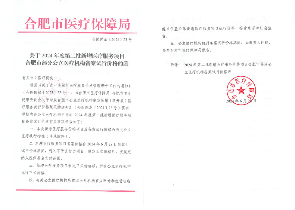 新增价格 ▏2024年度第二批批复新增医疗服务项目价格