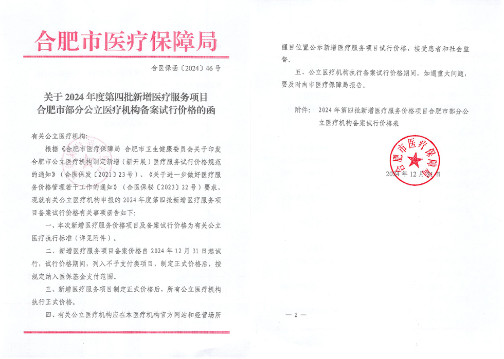 新增价格 ▏2024年度第四批批复新增医疗服务项目价格