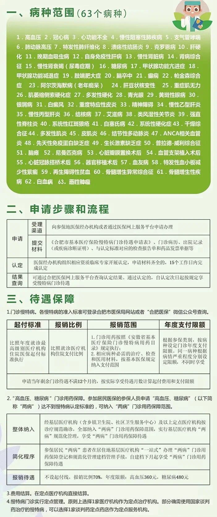 城乡参保居民达不到慢特病申请标准的高血压、糖尿病患者可纳入高血压、糖尿病(简称“两病”)门诊用药保障范围。