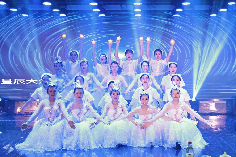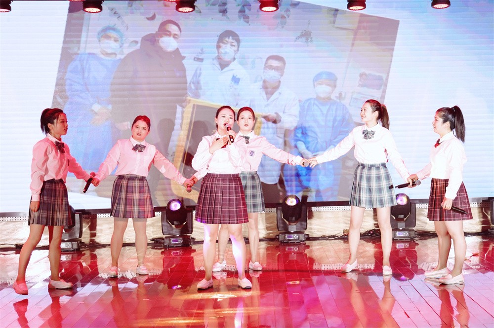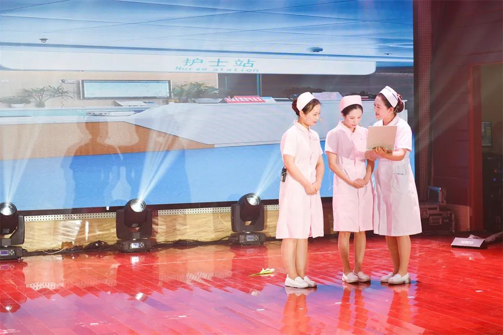 在日常工作中,一院护理人用优良的护理服务、精湛的护理技术和博大无私奉献的护理情怀,去守护患者的健康;在节日里,一院护理人用才艺表演诠释职业信仰,彰显护理风采。下半场的文艺汇演,在激情昂扬的《讴歌天使情》中拉开了帷幕。整场节目内容丰富,形式多样,有朗诵、合唱、男护走秀、舞台剧、模特秀、舞蹈等,精彩绝伦的演出展现了白衣天使们朝气蓬勃、积极向上的靓丽风采。舞台剧《不得不爱》描述了护理团队利用无痛分娩、导乐师为一位孕妇提供全程、专业、人性化服务的故事;模特秀《天使魅影》通过旗袍秀、汉服、青花瓷三种不同风格走秀展示护理人员的百变身姿;歌曲《夜空中最亮的星》将护士的眼睛比作明亮的星星,深情表白了每一位抗疫天使;《男护SHOW》展现了不同岗位的男护代表,秀出“男”丁格尔的别样风采;医务处用一首饱含热情的合唱《奔跑》为全院护理兄弟姐妹们献上了节日的祝福;舞蹈《绽放》更是彰显一代代年轻护理人积极向上的乐观品质,为医院美好的未来绽放自己的青春......